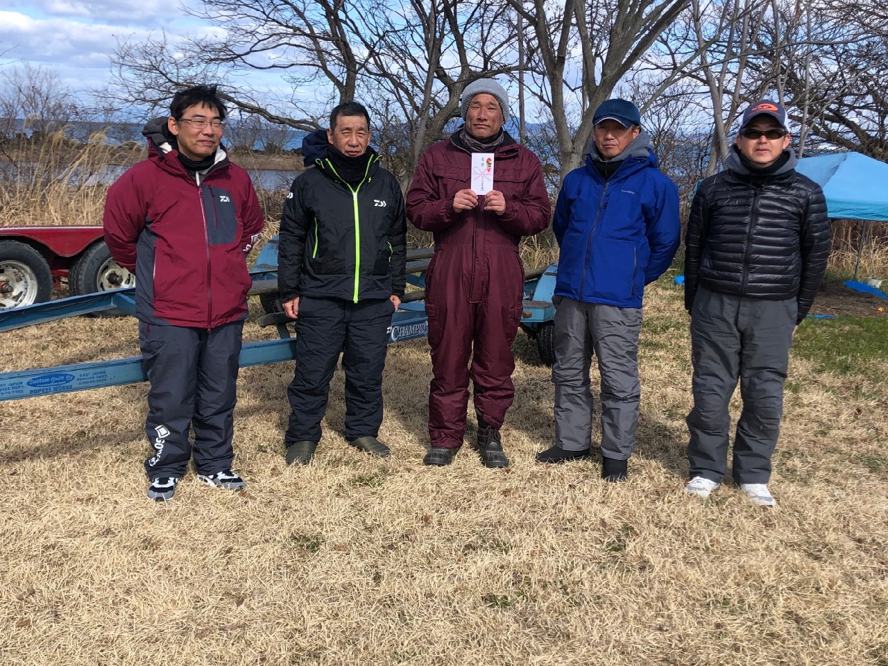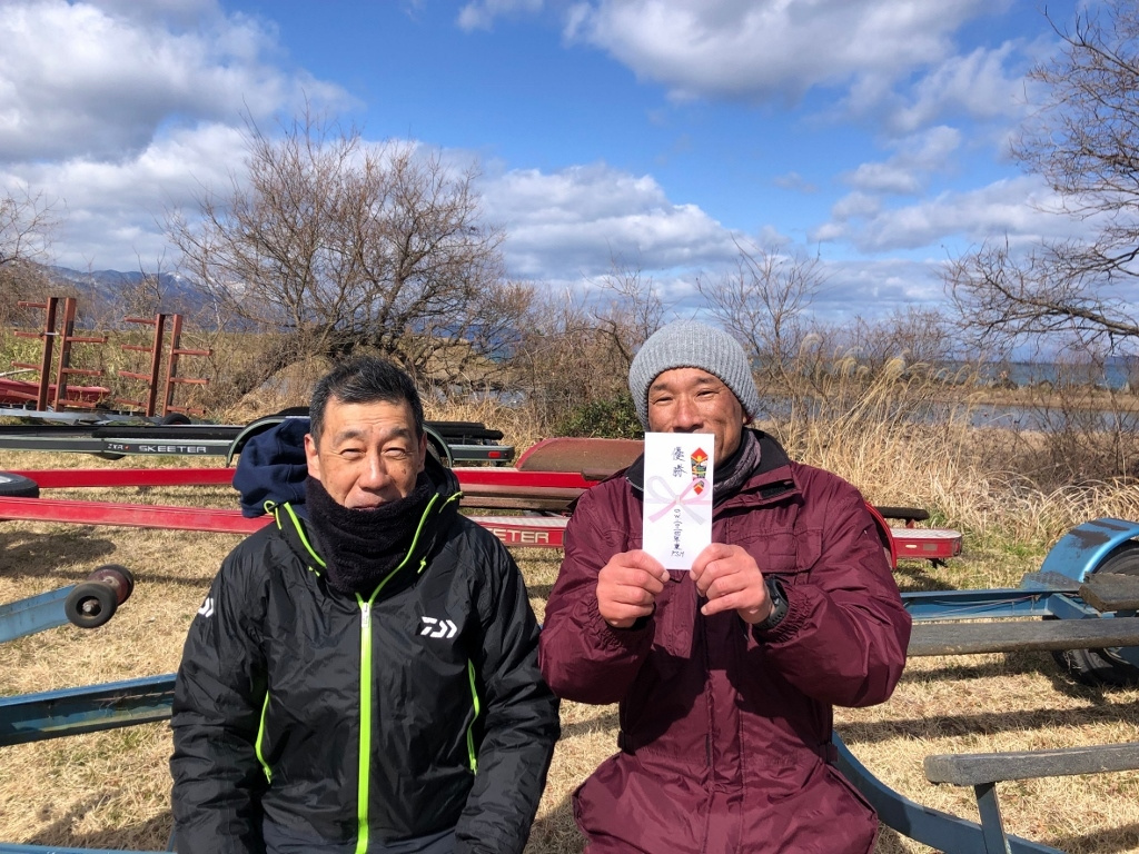 - 今回は6名のCompetitorがエントリー。1発狙いの北湖か?最近釣果の上がっている南湖か?おもいおもいのポイントに船を走らせた。結果は1匹のみのウエイインとなったがシャローの黒くて太い魚であった。
